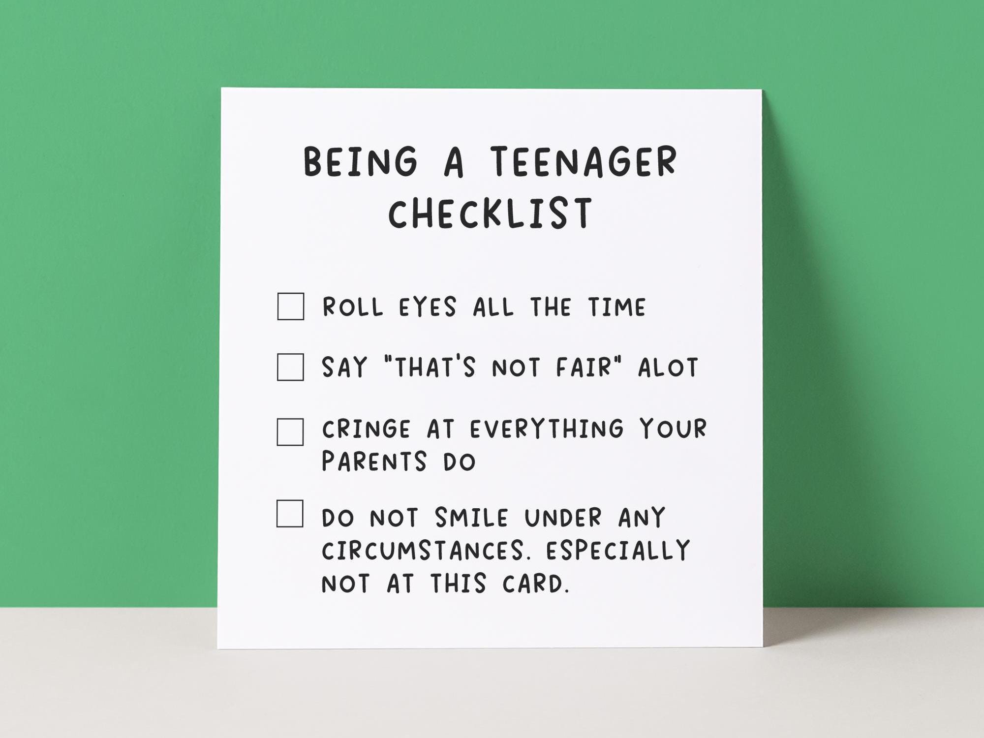 TEEN CHECKLIST – TEENAGER – BIRTHDAY CARD